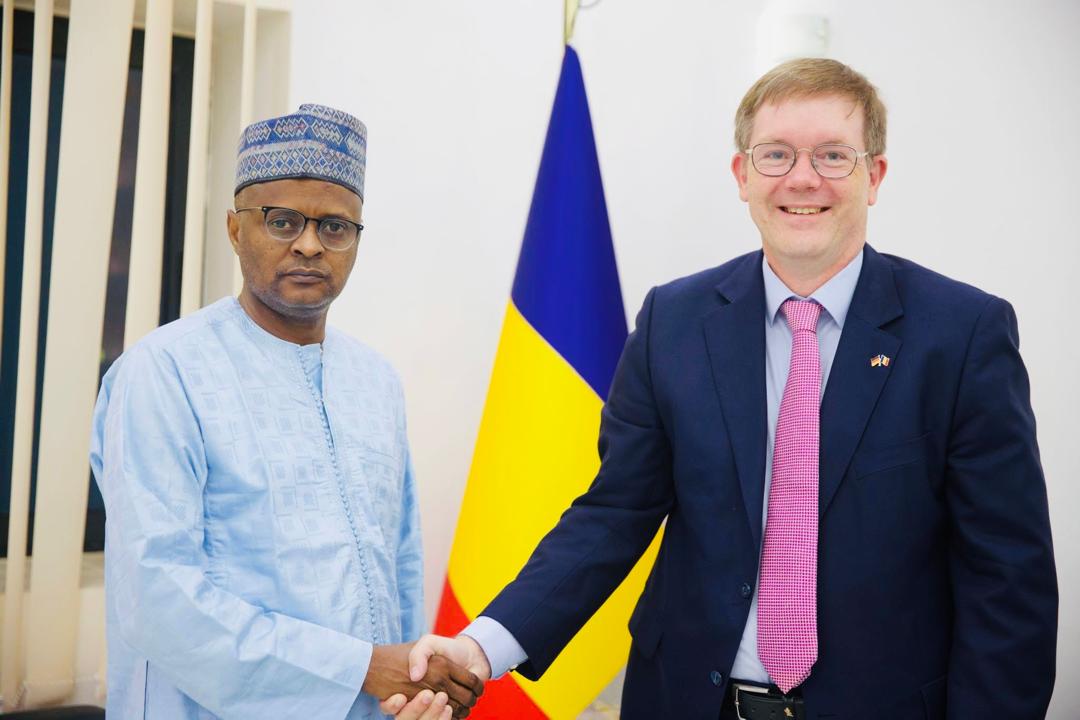 Le ministre d’Etat, ministre des Finances, du Budget, de l’Economie, du Plan et de la Coopération Internationale, M. Tahir Hamid Nguilin, a accueilli ce mercredi 06 août 2025, l’Ambassadeur Extraordinaire et Plénipotentiaire de la République Fédérale d’Allemagne au Tchad, Dr Gregor Schotten, à l’occasion de la fin de sa mission diplomatique au Tchad. Les deux hommes ont discuté des relations solides entre leurs pays, qui se caractérisent par une collaboration constante pour soutenir les efforts de développement.