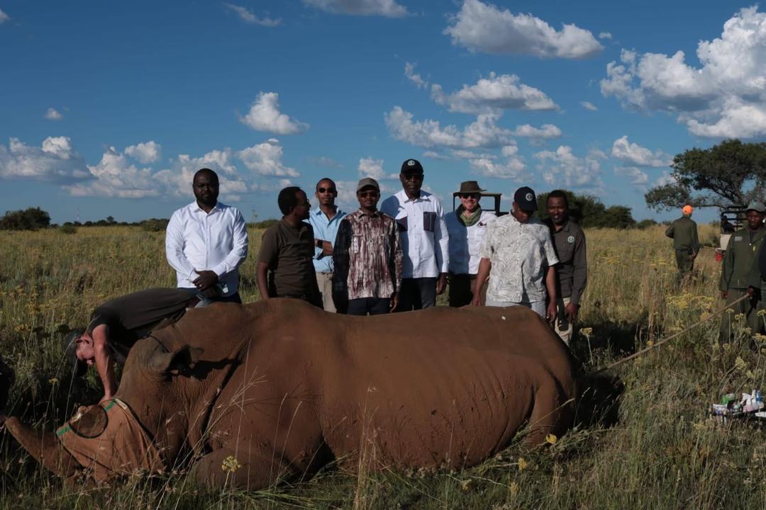 Dans le cadre de la mission de réintroduction des rhinocéros noirs au Parc National de Zakouma, conduite en Afrique du Sud, le Ministre de l’Environnement, de la Pêche et du Développement durable, M. Hassan Bakhit Djamous, accompagné de son équipe, a visité la ferme des rhinocéros d’African Parks.