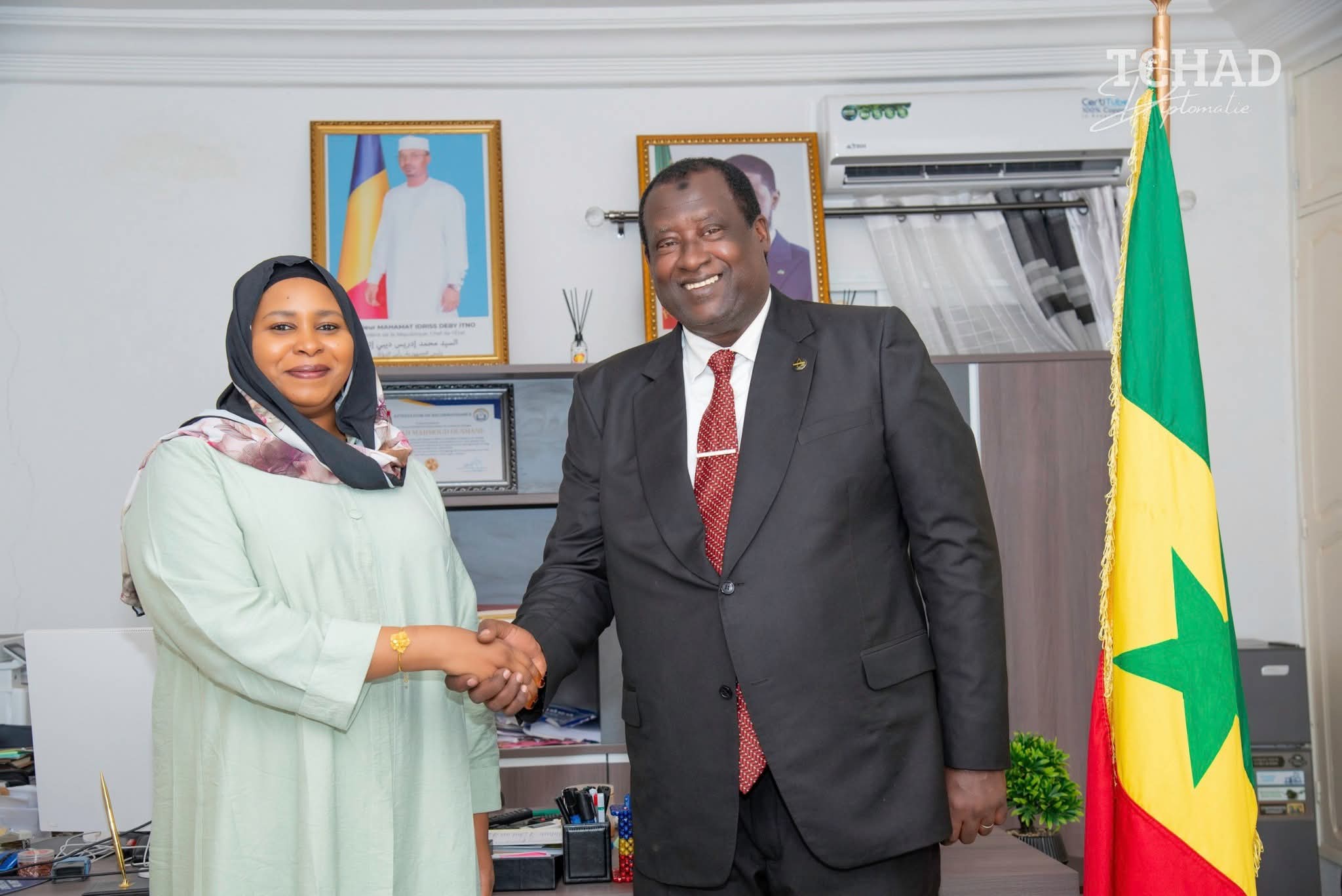 En mission officielle à Dakar, Mme Fatimé Aldjineh Garfa, Ministre Déléguée auprès du Ministre des Affaires étrangères, chargée de l’Intégration africaine et des Tchadiens de l’étranger, a effectué une visite de courtoisie au Consulat Général du Tchad. Accueillie chaleureusement par le Consul Général, M. Salah Mahmoud, et l’ensemble du personnel, elle a initié un moment d’échanges constructifs axés sur l’amélioration continue des services consulaires.