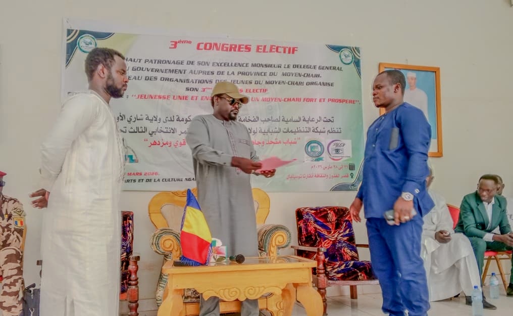 Le rideau est tombé ce samedi 28 mars 2026 sur le 3e congrès électif du Réseau des Organisateurs des Jeunes du Moyen-Chari. Organisées au Palais des Arts et de la Culture Ngarta Tombalmbaye, ces assises de trois jours ont abouti à l’élection d’une nouvelle équipe dirigeante, sous l’égide du Délégué général du gouvernement auprès de la province, Abderamane Ahmat Bargou.