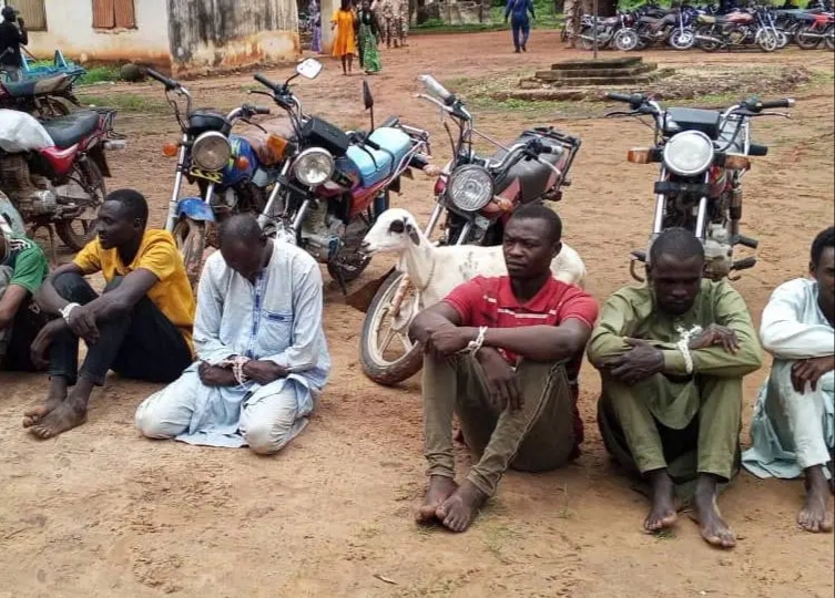 Parmi les objets saisis figurent huit (8) motos de marques diverses — dont une entièrement dépiécée — ainsi qu’une brebis blanche en gestation, et bien d’autres objets volés.