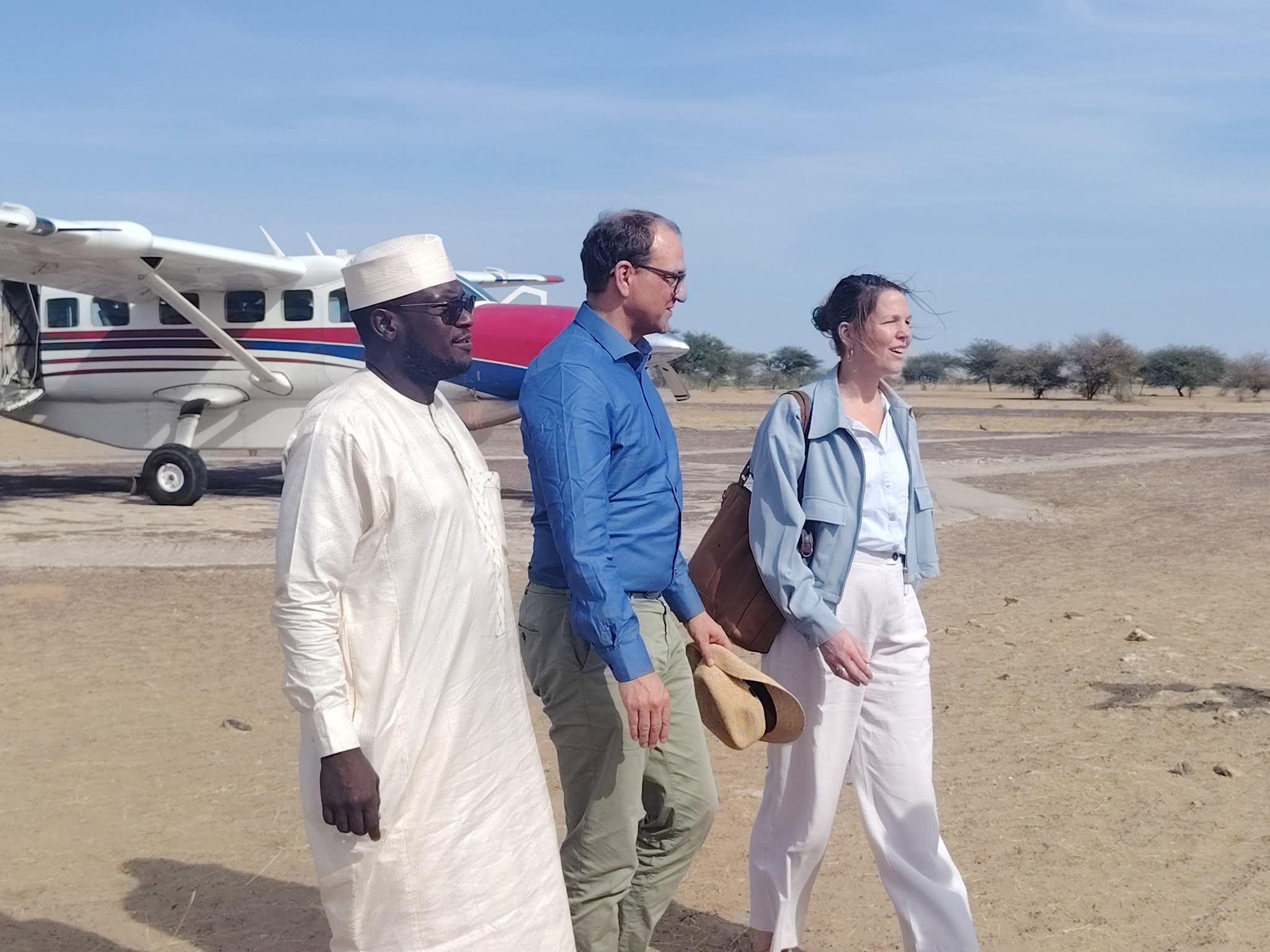 ​La délégation, conduite par Mme Léa Smidt, cheffe de la Coopération à l’ambassade d’Allemagne, et M. Patrick Berg, directeur exécutif de la Fondation Facilité Sahel, a été accueillie à l’aérodrome de Bol par le Secrétaire général de la province, M. Ndjilema Mitterand, entouré des autorités administratives et militaires.