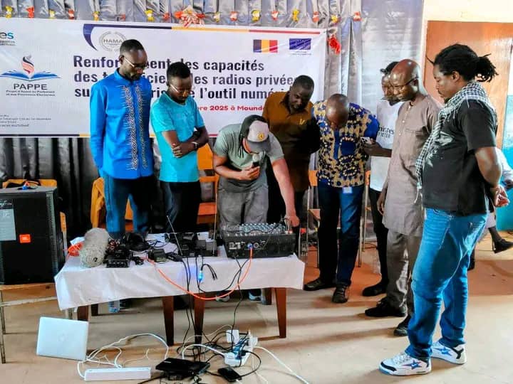 Du 10 au 14 novembre 2025, la ville de Moundou a accueilli une session de formation destinée à une trentaine de techniciens issus des radios privées du sud du Tchad. Organisé conjointement par la Haute Autorité des Médias et de l’Audiovisuel (HAMA) et le PAPPE/ECES, cet atelier avait pour objectif d’améliorer la maîtrise des outils numériques indispensables au travail radiophonique.