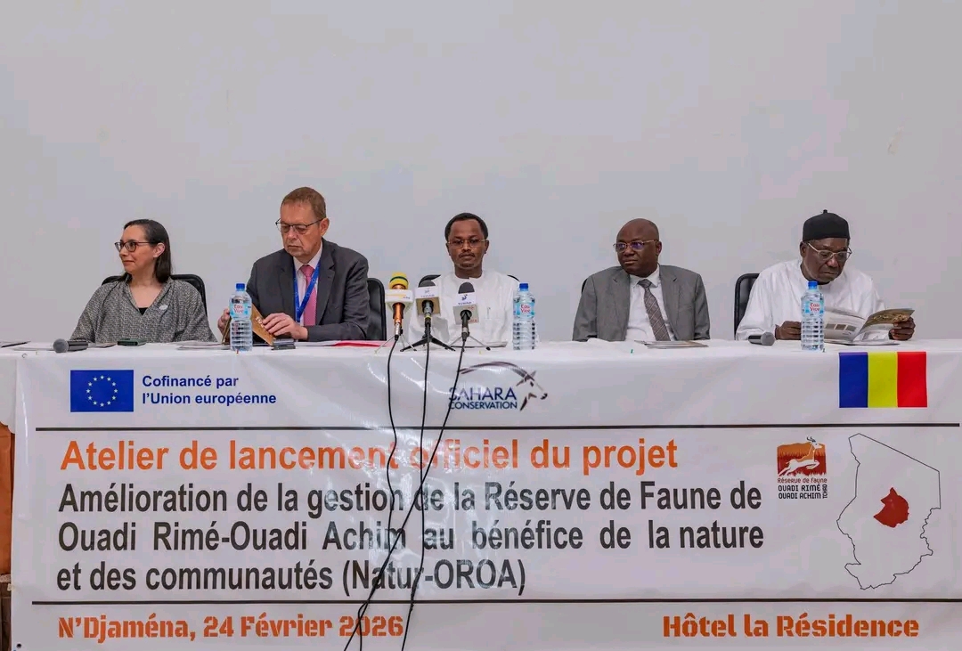 Le Ministre de l’Environnement, de la Pêche et du Développement durable, M. Hassan Bakhit Djamous a procédé ce mardi, 24 février 2026, au lancement du projet « Amélioration de la gestion de la Réserve de Faune de Ouadi Rimé-Ouadi Achim au bénéfice de la nature et des communautés » (Natur-OROA).