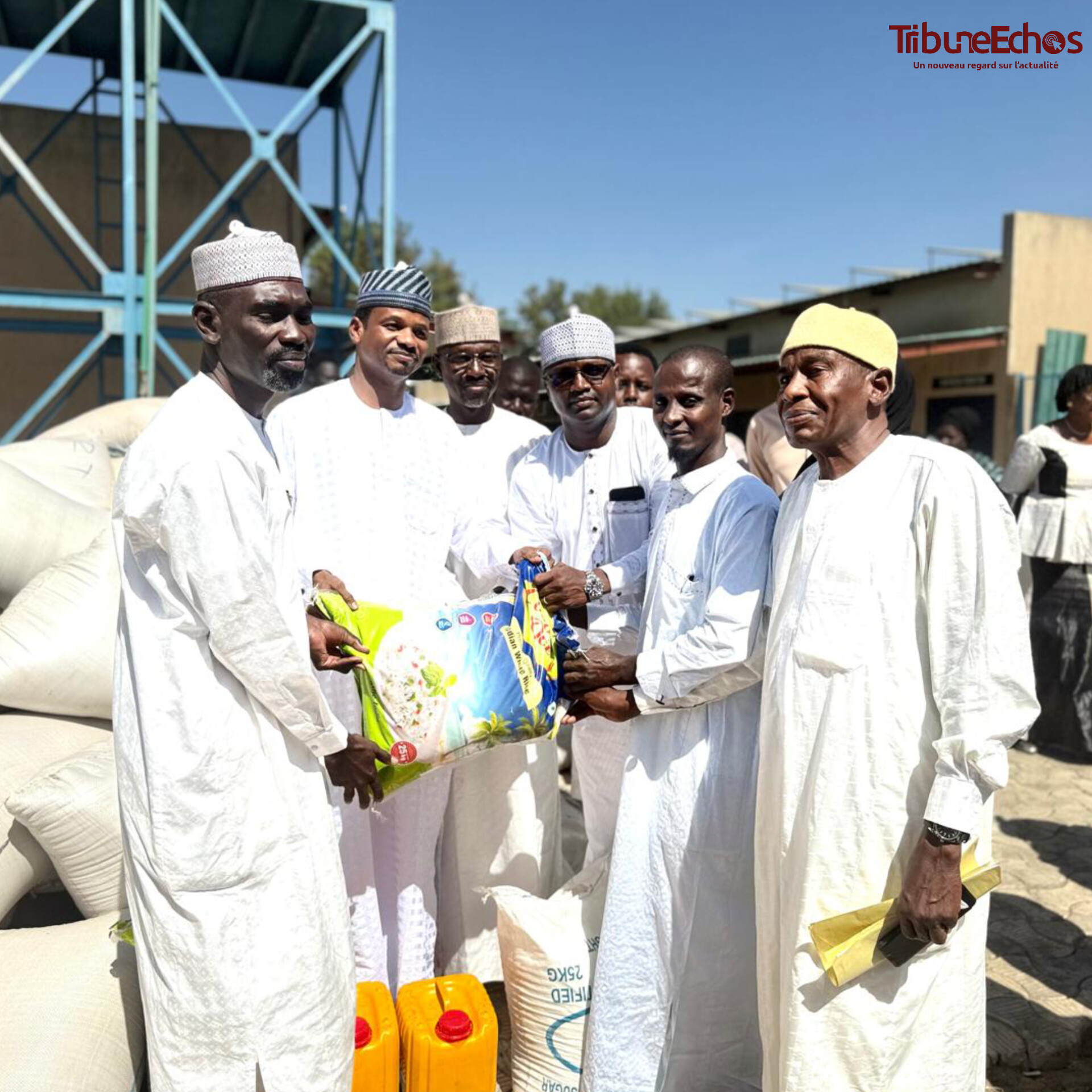 Le don de vivres est composé de 800 sacs de mil pénitentiaire de 100 kg, 300 sacs de haricots de 100 kg, 1 600 sacs de riz de 25 kg, 500 sacs de sucre de 25 kg, 500 bidons d’huile de 10 litres, etc.