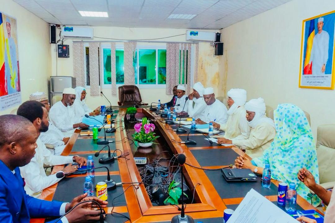 Accompagné de l’inspecteur général M. Ali Mahamat Ali et de l’inspectrice adjointe Mme Achta Hamit Akhouna, le Secrétaire Général a échangé avec l’équipe dirigeante de l’ONASA, dirigée par M. Ahmat Mahamat Kosseï, entouré de ses principaux collaborateurs : le directeur technique, le conseiller, ainsi que les chefs de division et de service.