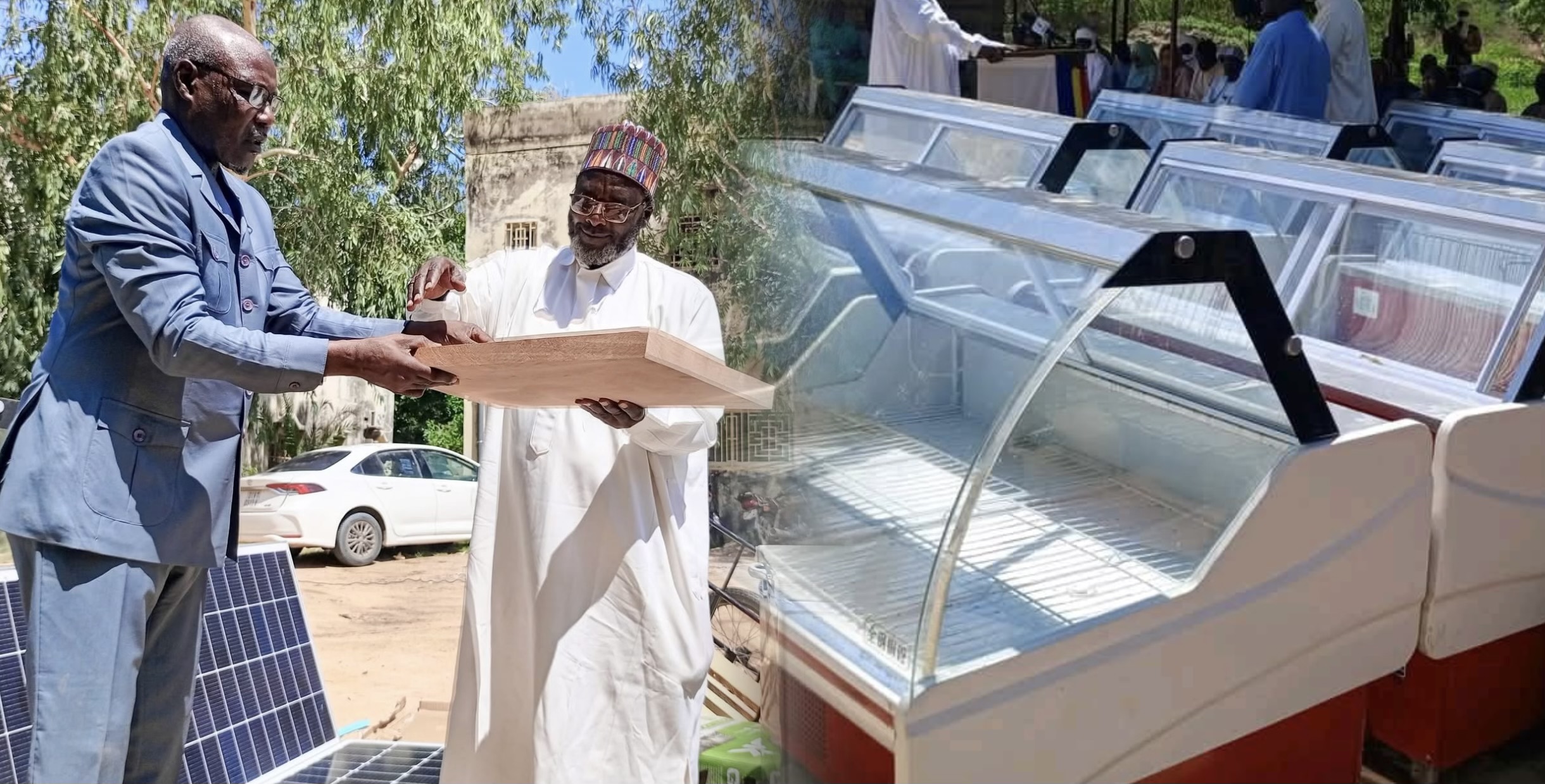 Ces kits sont composés de congélateurs solaires, des vitrines réfrigérées, des balances de cuisine professionnelle, des scies à os, des porte-tout, des hachoirs de viande et des billots de boucherie en bois.