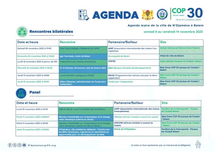 Pour suivre l’évolution des activités de la délégation de N’Djamena pendant la COP30 et rester informé des dernières actualités, consulter ce lien : 👉 ndjcop30.org