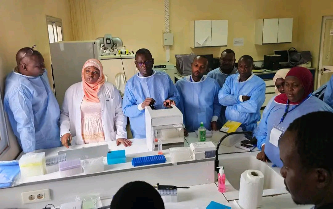 Cette équipe conjointe, dirigée par le directeur adjoint des laboratoires d’analyses biomédicales, Dr Oumar Ouchar Mahamat, participe à une formation certifiante sur le séquençage de nouvelle génération et les analyses bio-informatiques, organisée par le Centre de Recherche Médicale et Sanitaire du Niger.